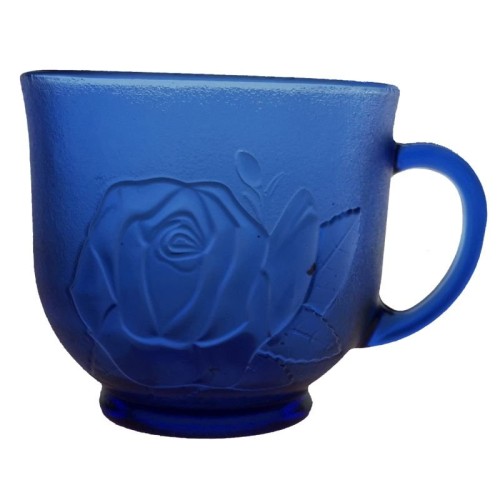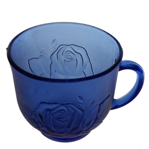 set 6 cesti BBC c22 din sticla albastra fara farfurie 250 ml