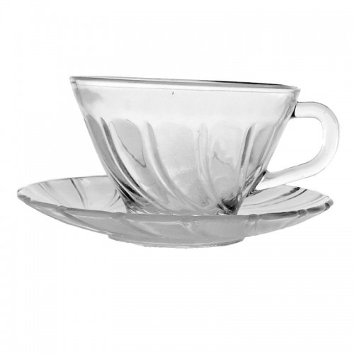 set 6 cesti KIG milano 02 ab din sticla transparenta cu farfurie 150 ml